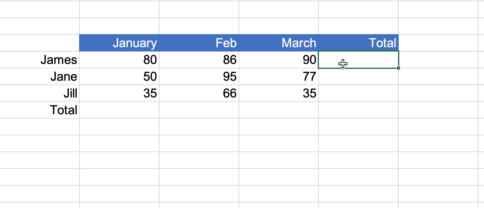What if we want to add Totals for each month and each person in the grey sections below ⬇️