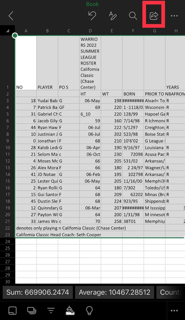 At this point, you can email the workbook to yourself for further cleaning on your computer via the icon in the top right corner