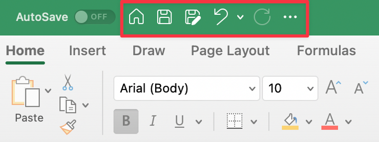 The Quick Access toolbar is found in the top left corner of your Excel spreadsheet.